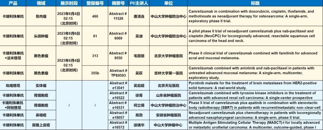 此外,在头颈肿瘤、黑色素瘤、骨肉瘤、鼻咽癌、肾细胞癌、尿路上皮癌等多个领域,卡瑞利珠单抗、吡咯替尼等产品相关研究一共入选了4项壁报展示和5项线上发表,彰显了A8国际医药强大的自主研发综合实力。